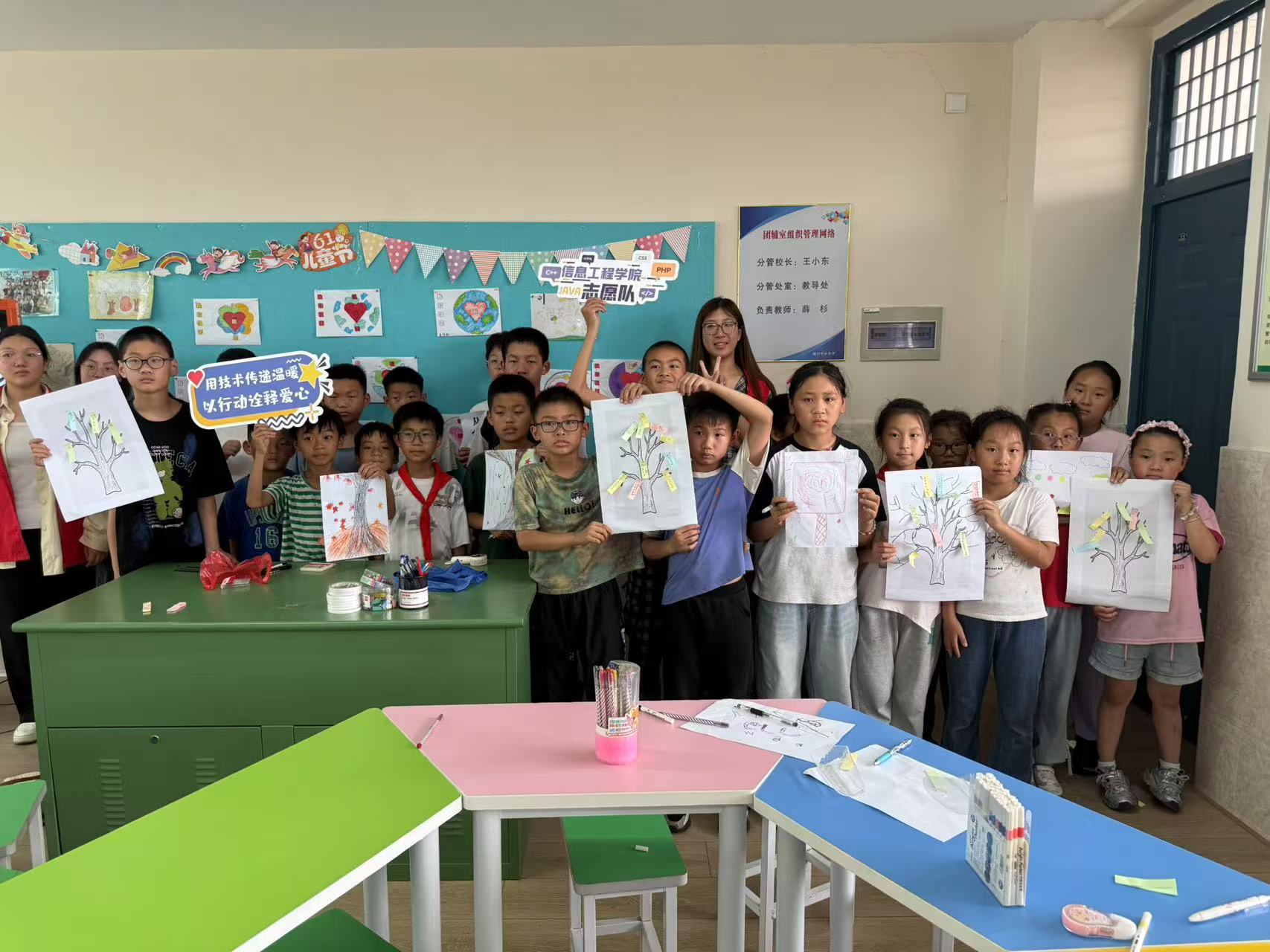 信息工程学院“沐光行者社”实践团队联合丹阳佳苑社会工作服务中心,在陵口镇未保站开展儿童支持系列实践活动。孩子们在“彩绘心流充电站”用画笔定格温暖,在“支持树”上写下心声;通过“故事拼图”“声音地图”等互动,学会倾听与协作。团队以“艺术+心理”模式践行担当,既为留守儿童织密情感支持网,也为大学生搭建实践平台,实现双向成长,用青春力量为童心护航,彰显校社协同的育人成效。